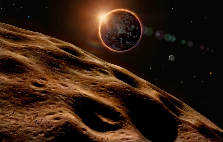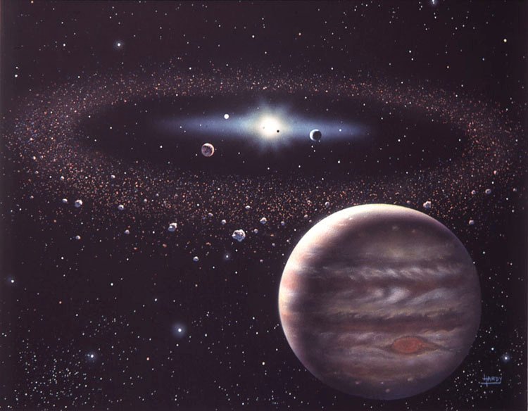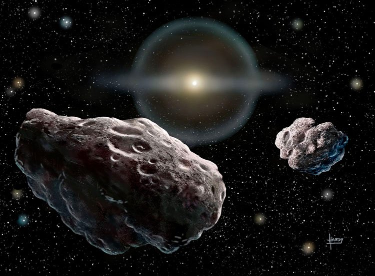 More than a million asteroids, over 200 of them 100km or more in diameter (but irregular in shape) form belts between the orbits of Mars and Jupiter; though some stray inward, closer to the Sun and so closer to the Earth.