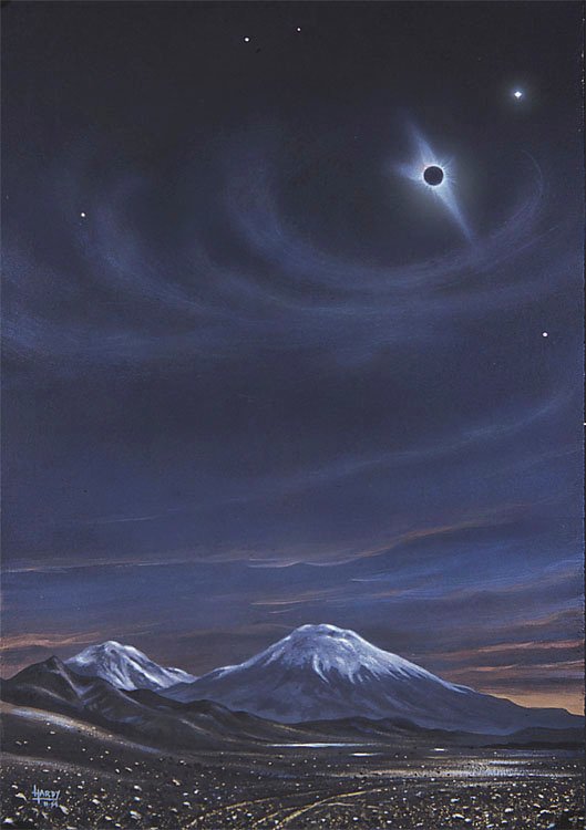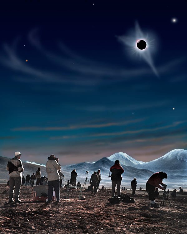 Since his first eclipse, Hawaii in 1991, Hardy has travelled to 8 – and seen 6: Chile in 1994, Venzuela in 1998, Zambia in 2001, the Libyan Sahara in 2006 and the South Pacific in 2010. The ones that got away were 1999 (a cruise near the Channel Islands) and 2009, China. Some excellent photos taken during some of these may be seen in Flickr and Jalbum.